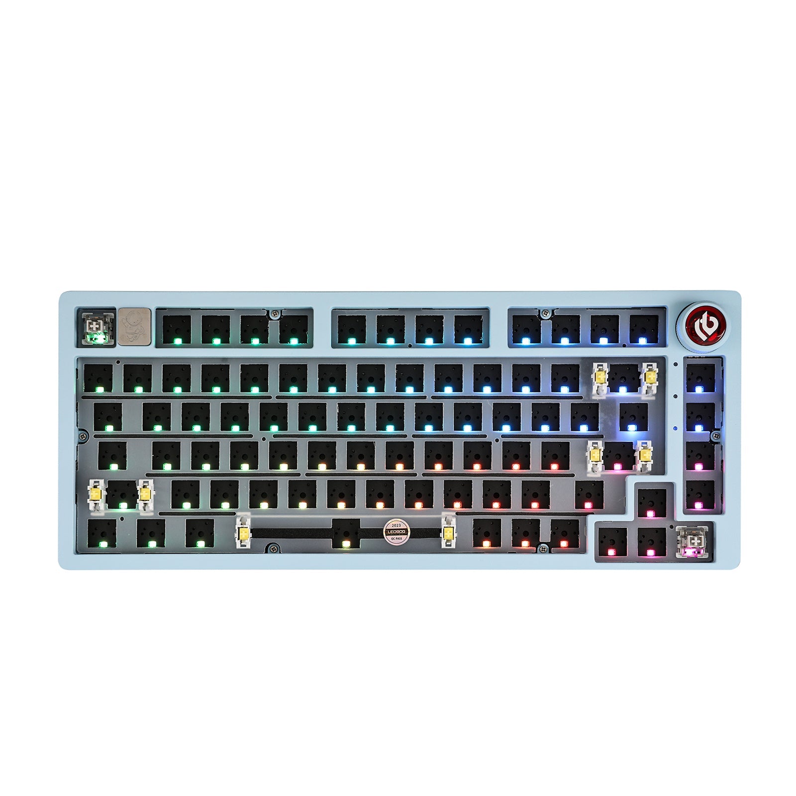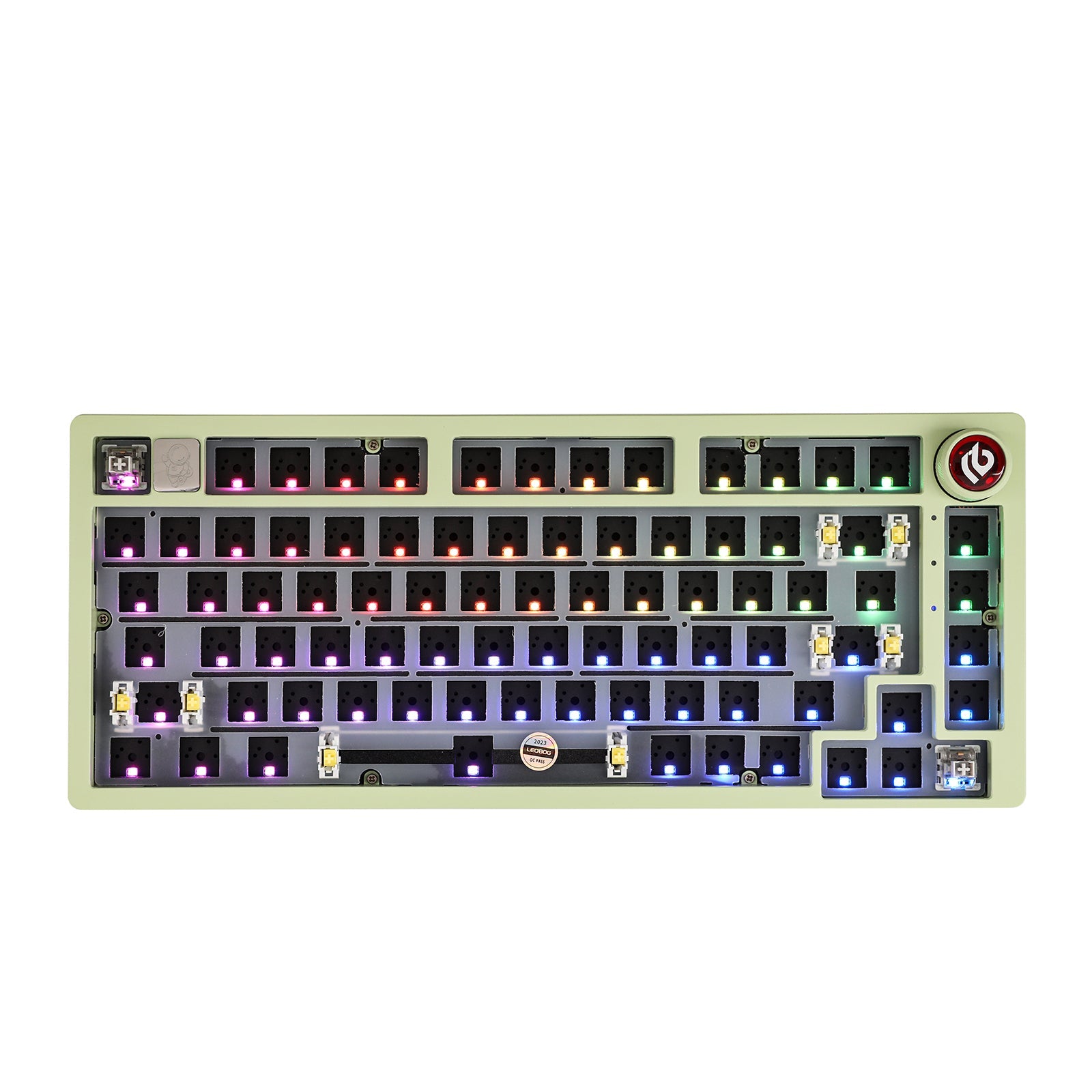 The EPOMAKER x LEOBOG Hi75 introduces the innovative knob, an epitome of style meets functionality. This intuitive knob allows for smooth transitions between work and gaming modes, offering a constant RGB glow for a focused work environment and dynamic RGB flashing for an immersive gaming experience. It also provides refined control over volume and lighting, adding sophistication to every keystroke.