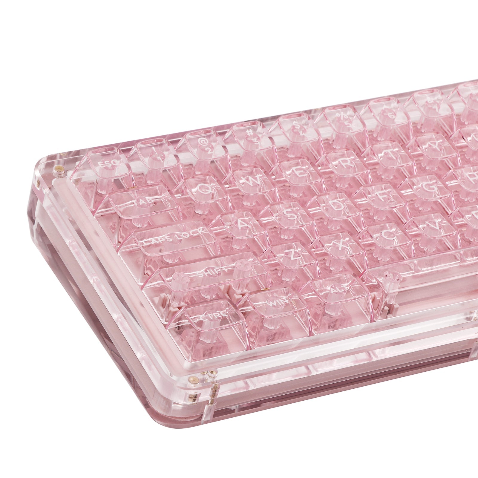 The Phantom 68 showcases a stunning transparent acrylic construction, reflecting the KiiBOOM brand's dedication to innovation, quality, and aesthetic appeal. With crystal clear, shadow black, blushing pink, mystic purple color, you can choose the one to fit your best. Crystal Clear - Embrace the transparent elegance of the Crystal Clear Phantom 68, showcasing its unique acrylic design and components. Shadow Black - Exude sophistication with the Shadow Black Phantom 68, featuring a transparent black hue that adds a touch of mystery to your setup. Blushing Pink - Brighten up your workspace with the Blushing Pink Phantom 68, offering a soft and playful transparent pink tone that stands out. Mystic Purple - Immerse yourself in the enchanting aura of the Mystic Purple Phantom 68, boasting a vibrant transparent purple hue that elevates your keyboard's appearance.